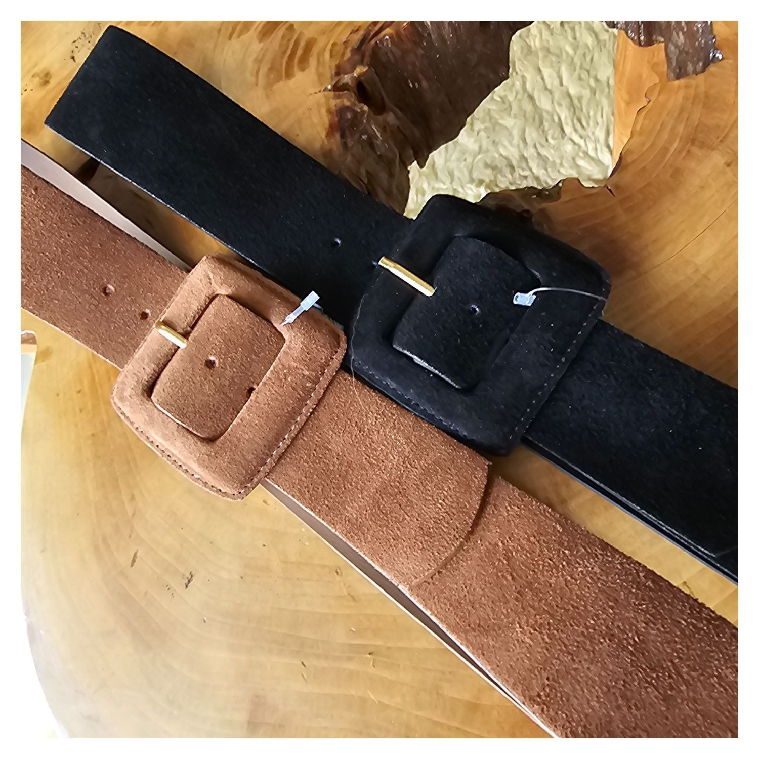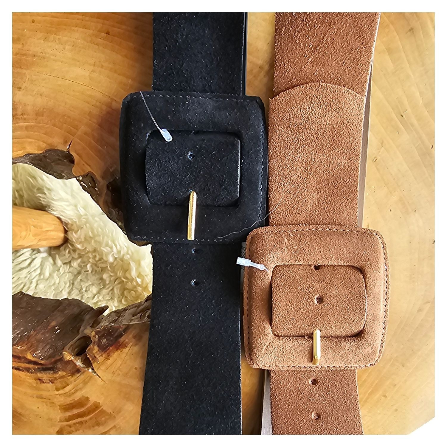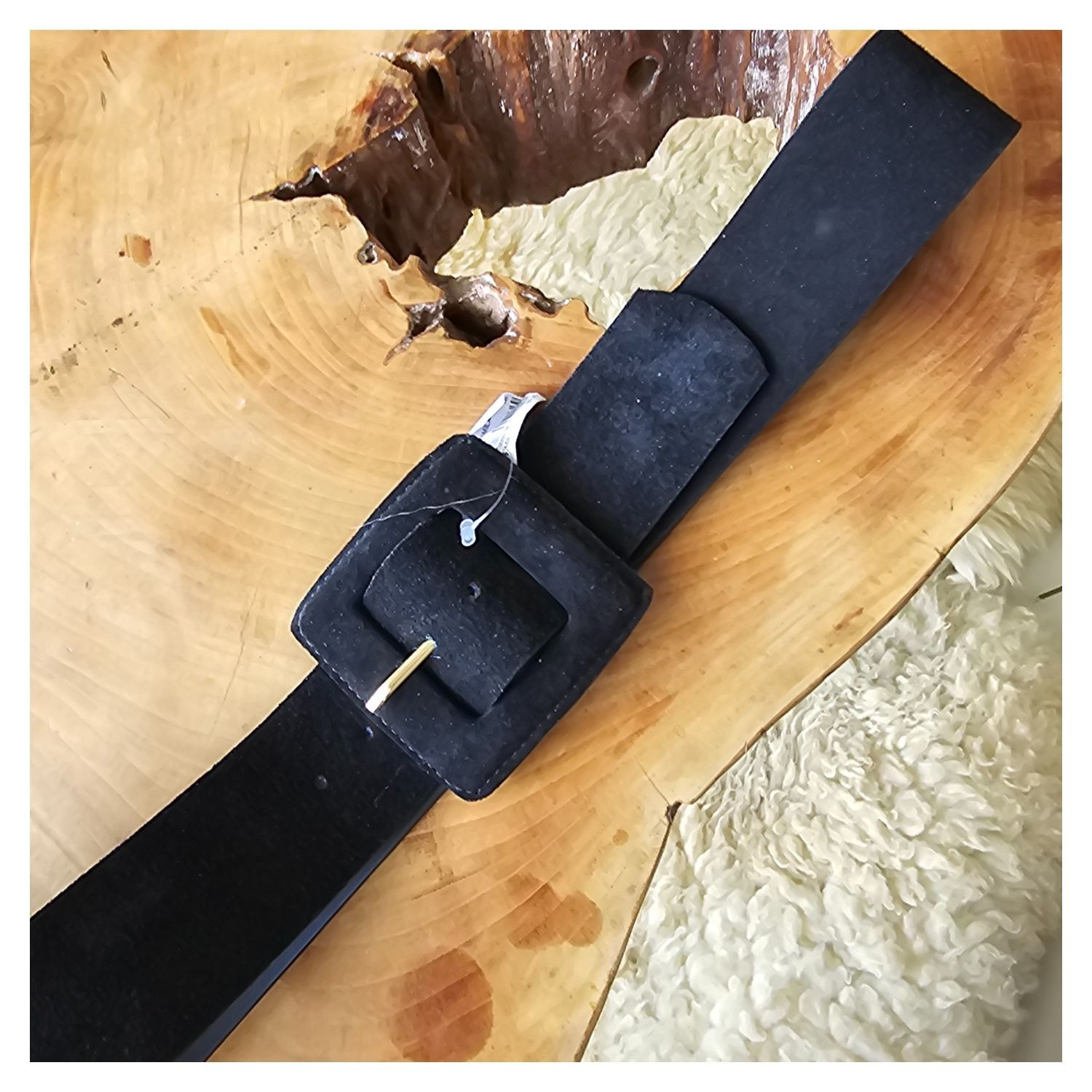 Cinto Todo Preto em Couro Camurça com Fivela Quadrada.