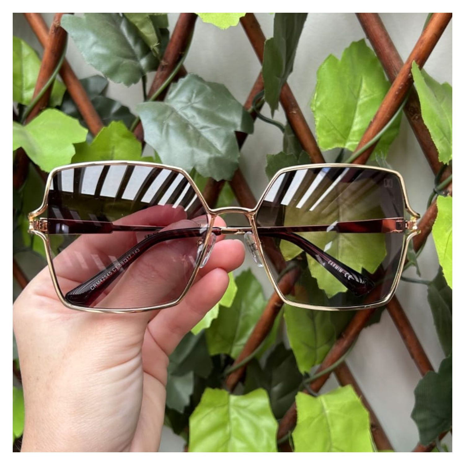 Óculos Haste Fina em Metal Dourado, Lente Grande Degrade Quadrado.