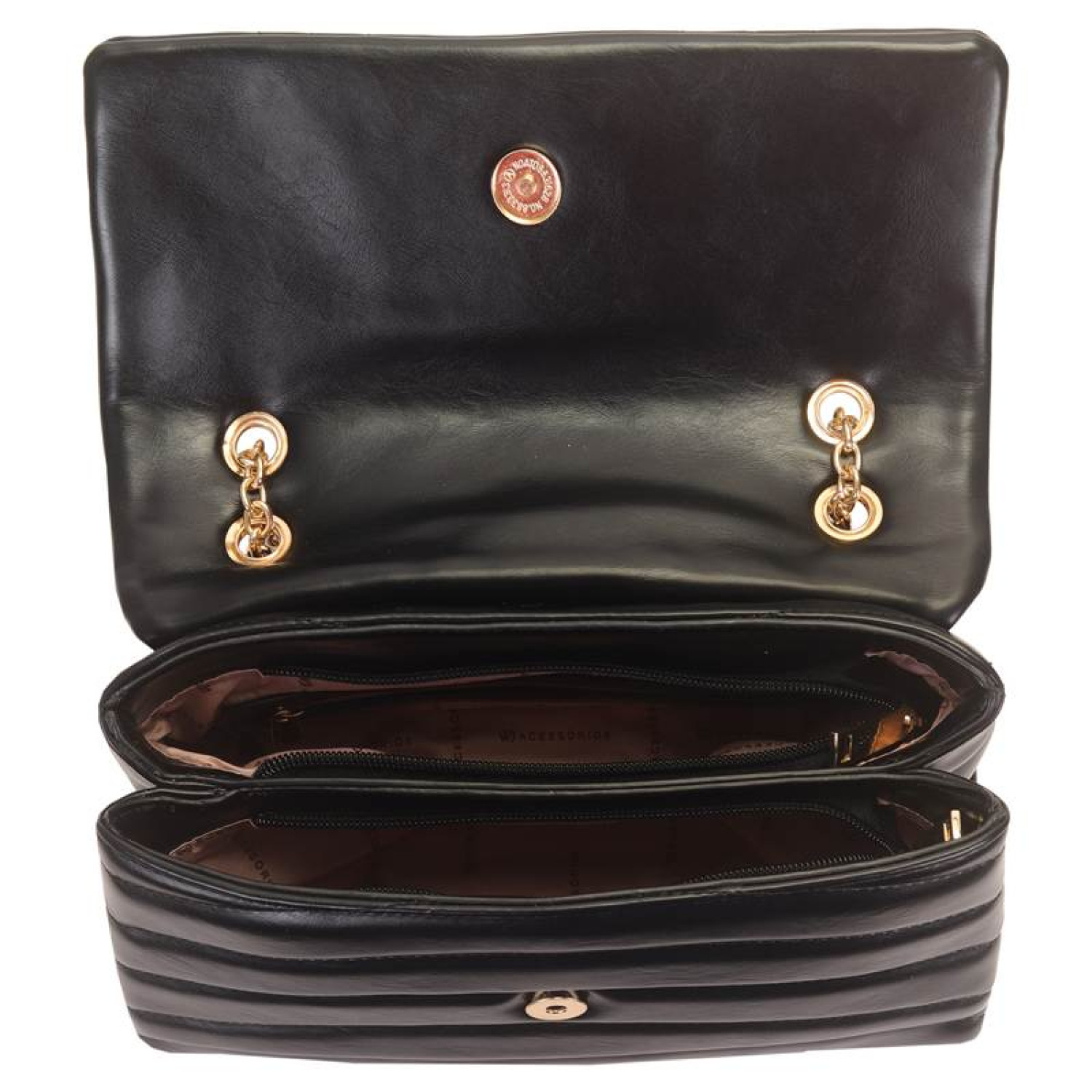 Características: FECHO COM BOTÃO MAGNÉTICO, BOLSO INTERNO, ALÇA DE OMBRO, ALÇA LONGA DE CORRENTE, ALÇA OMBRO DE CORRENTE