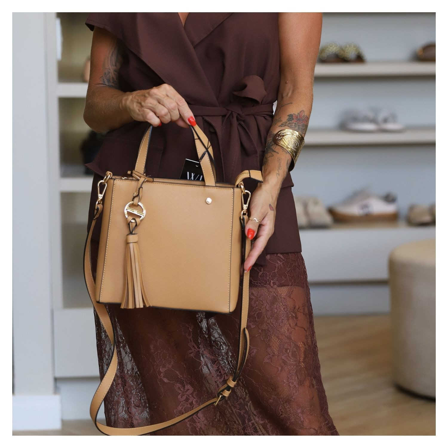 Características: BOLSO INTERNO, ALÇA DE MÃO, ALÇA LONGA COM REGULAGEM, BARBICACHO, CHAVEIRO COM LOGO WJ