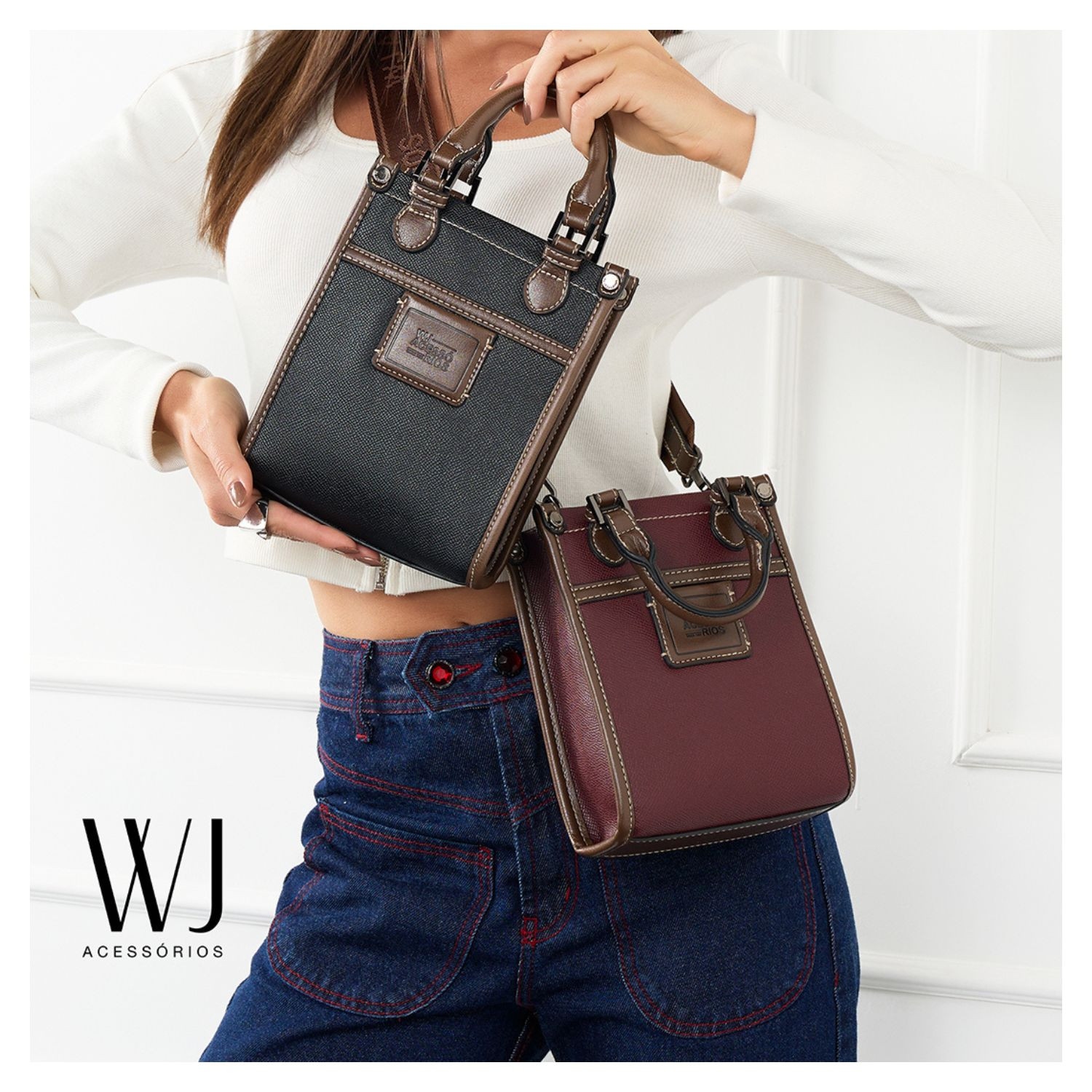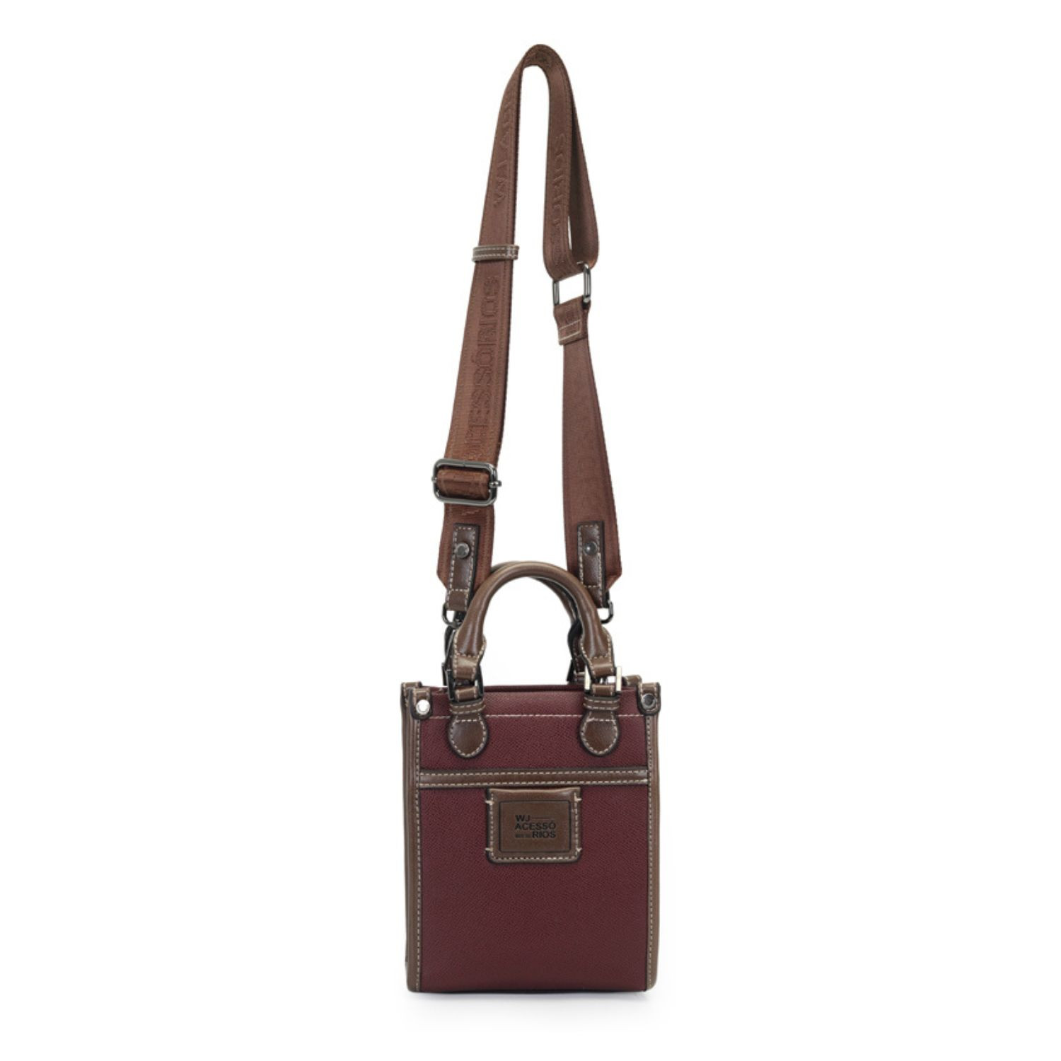 Bolsa Couro Eco, Retangular Media Com Alça de Mão e Transversal Larga Marrom.