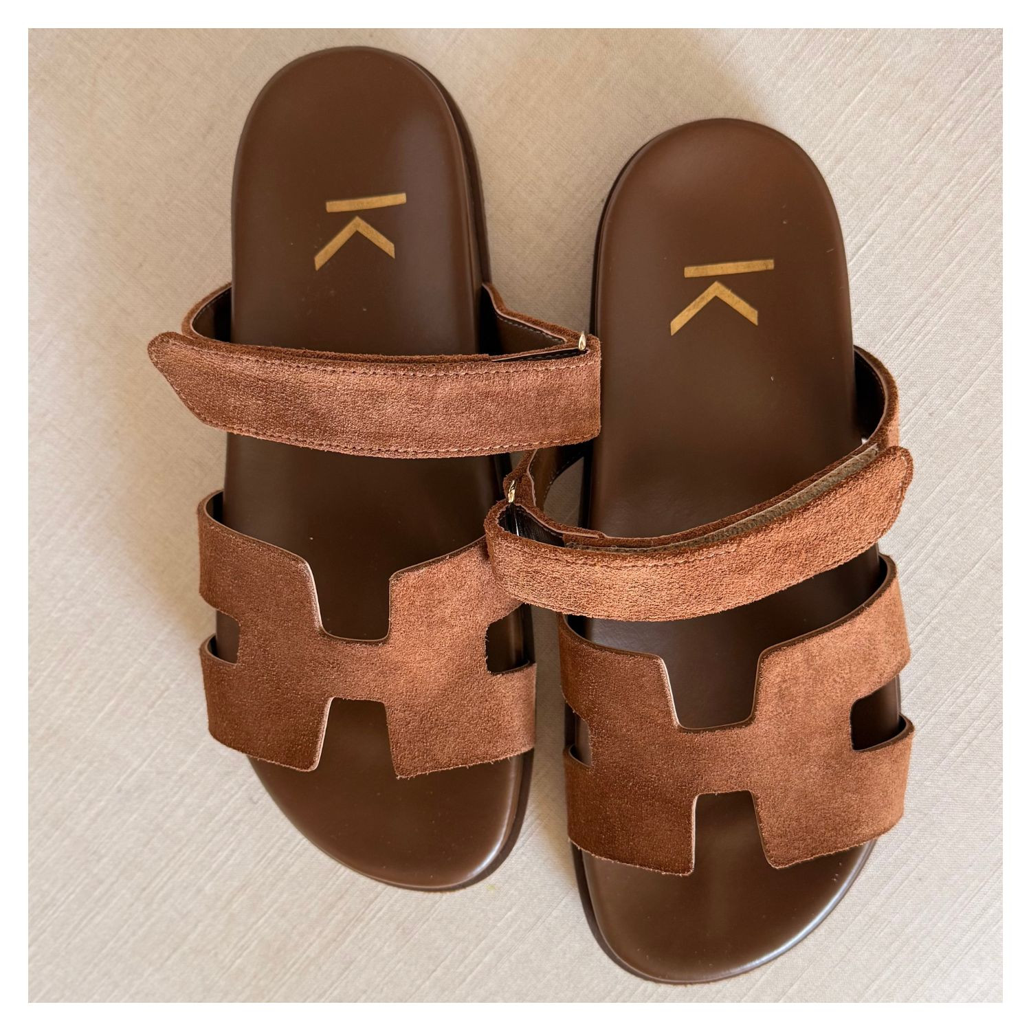 Birken Camurça Marrom Cabedal H, Uma Tira Velcro Sola Flat Marrom Café.