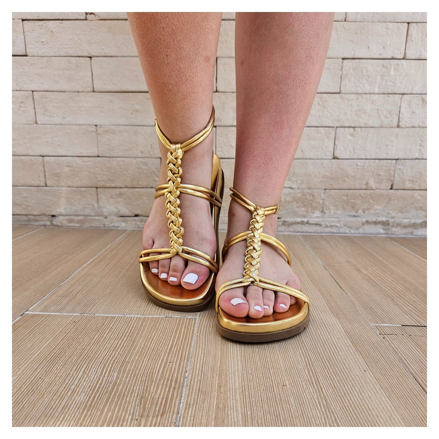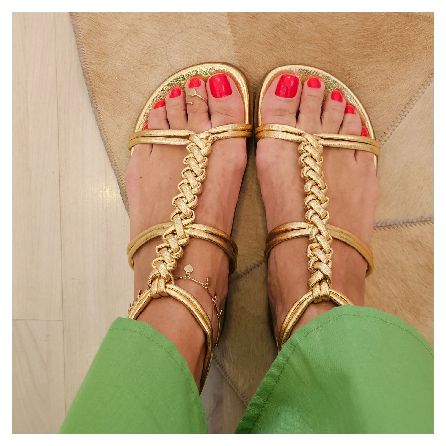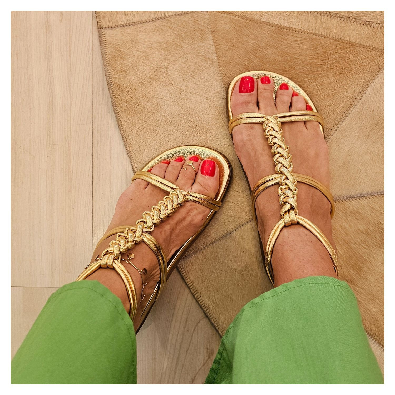 Birken Dourada Metalizada, Cabedal Tira Trançada.