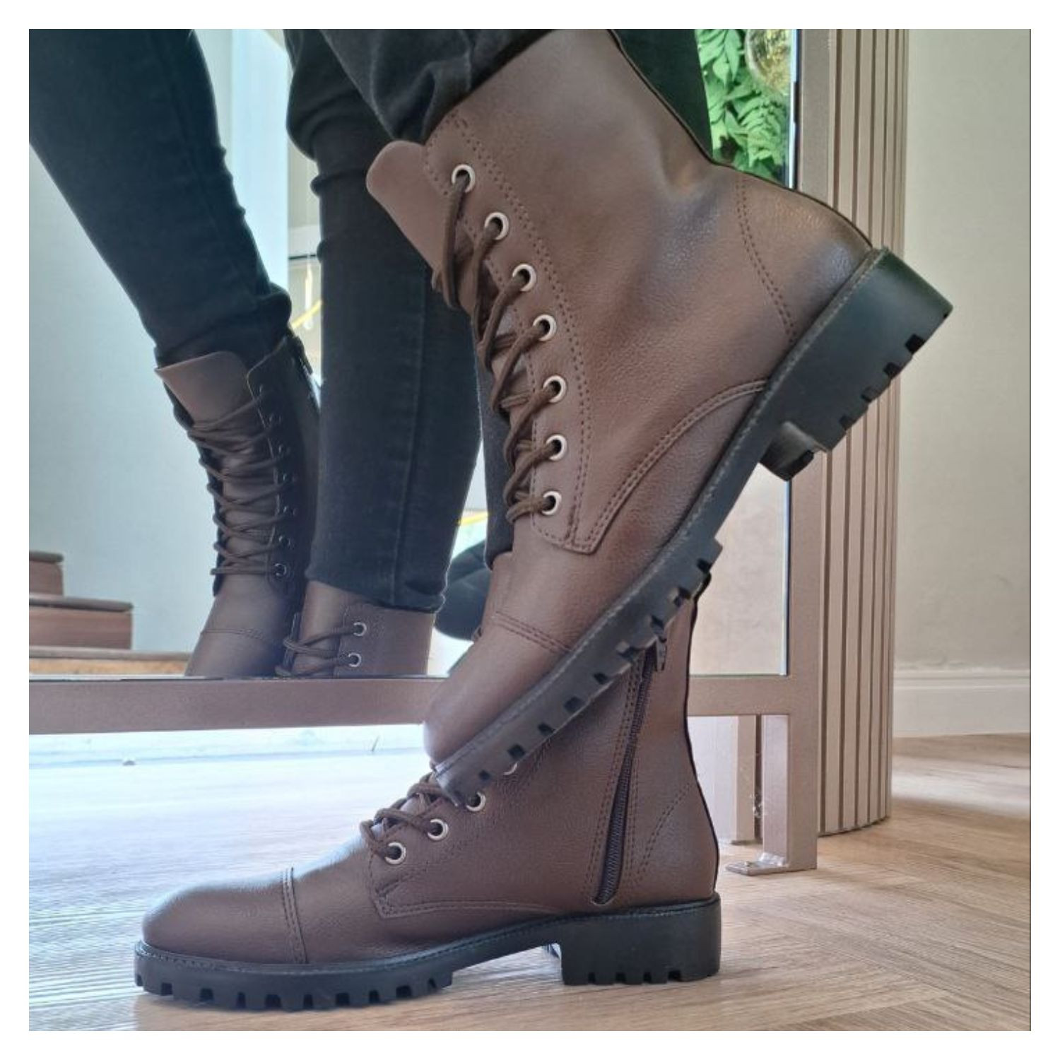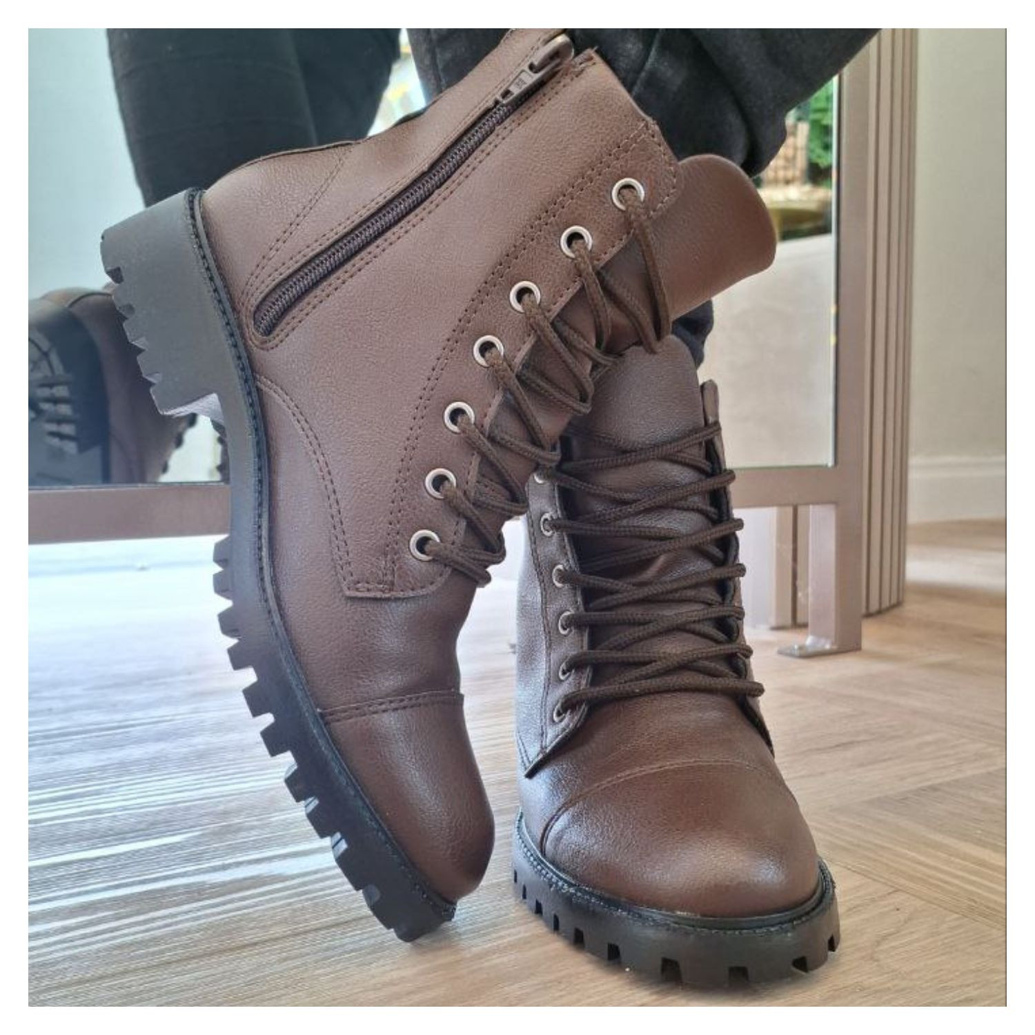 Coturno Liso Sola Baixa Tratorada Com Cadarço Ziper Lateral Tecido Sintético