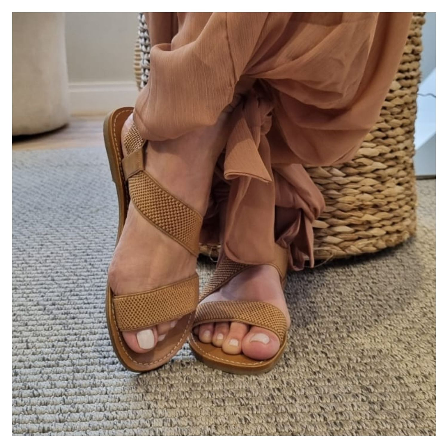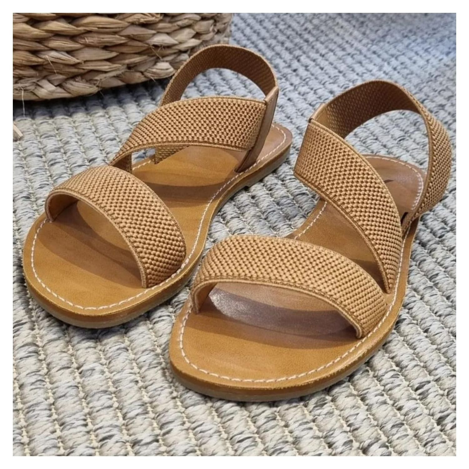 Rasteira Tiras Elasticas Em Z, Degrade De Tons Marrons.