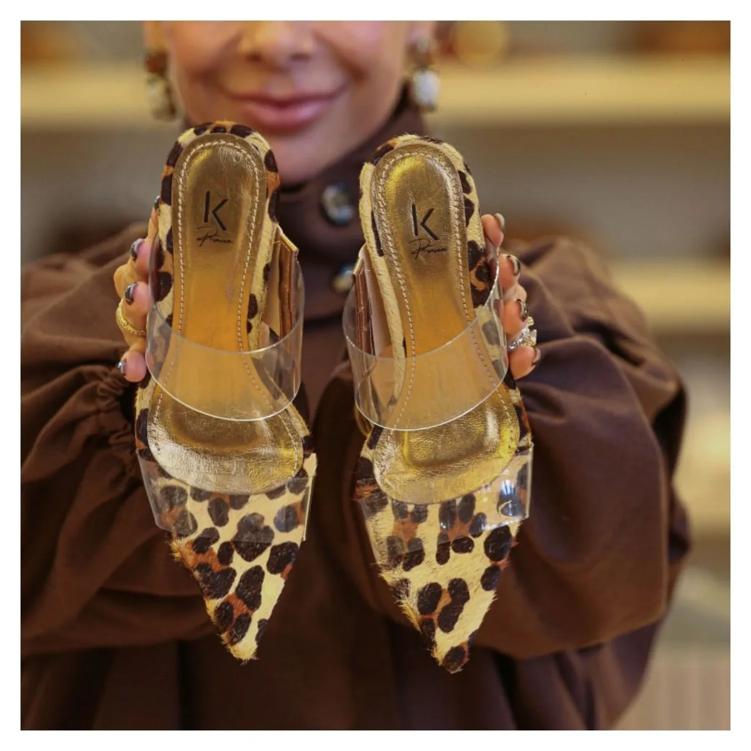 Tamanco Em Couro Pelo Animal Print, Duas Tiras em Vinil Transparente, Salto em Madeira Geometrico. Dedicado a Nossa Querida Cliente Tati Carlos.