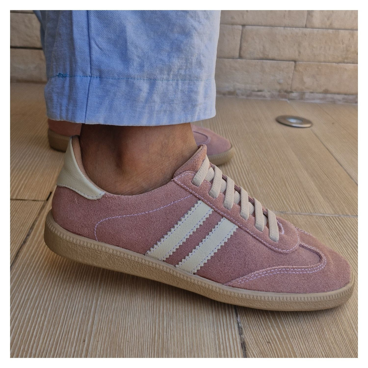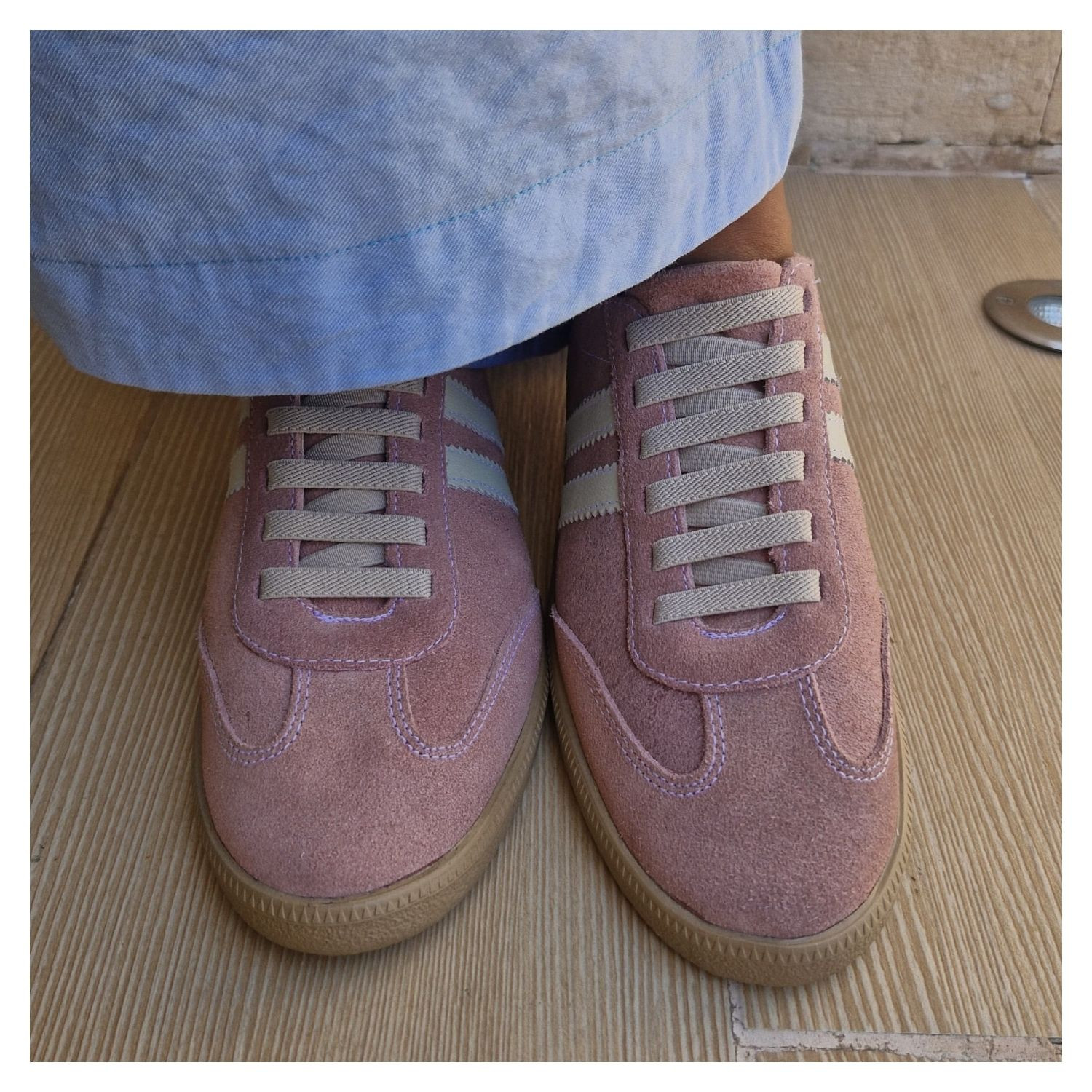 Tenis Nobuk Rosa Claro, Bico Redondo e Cadarço Elastico.