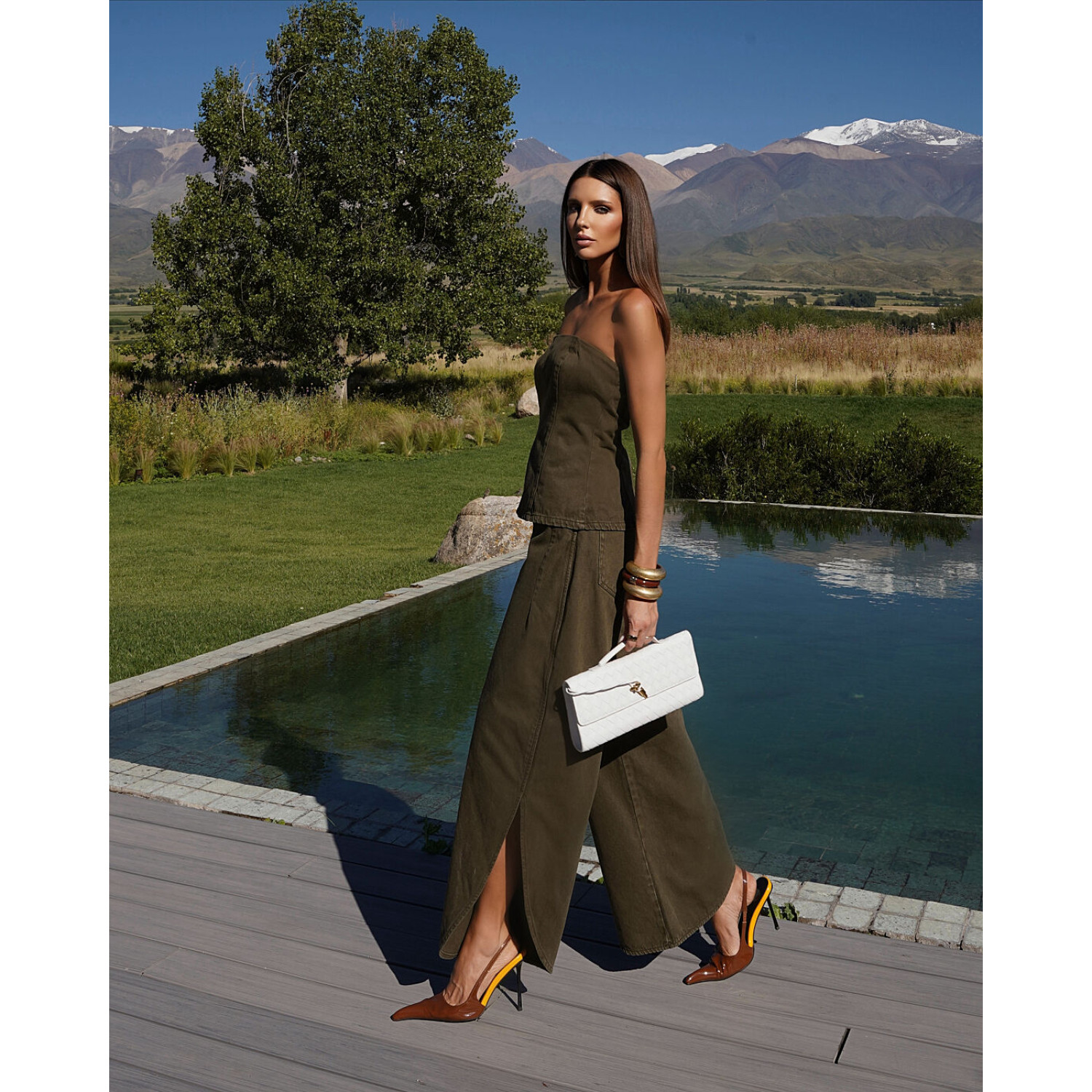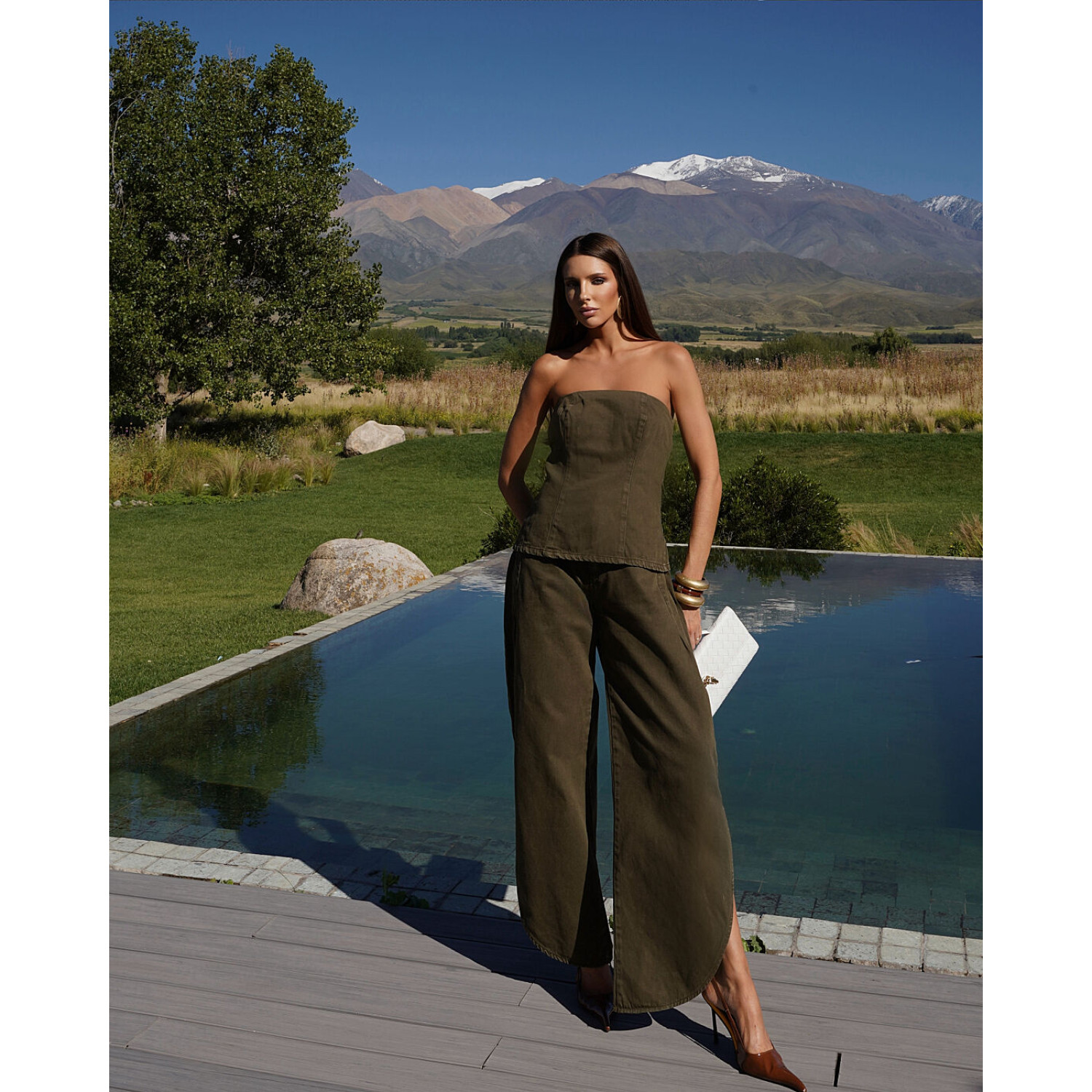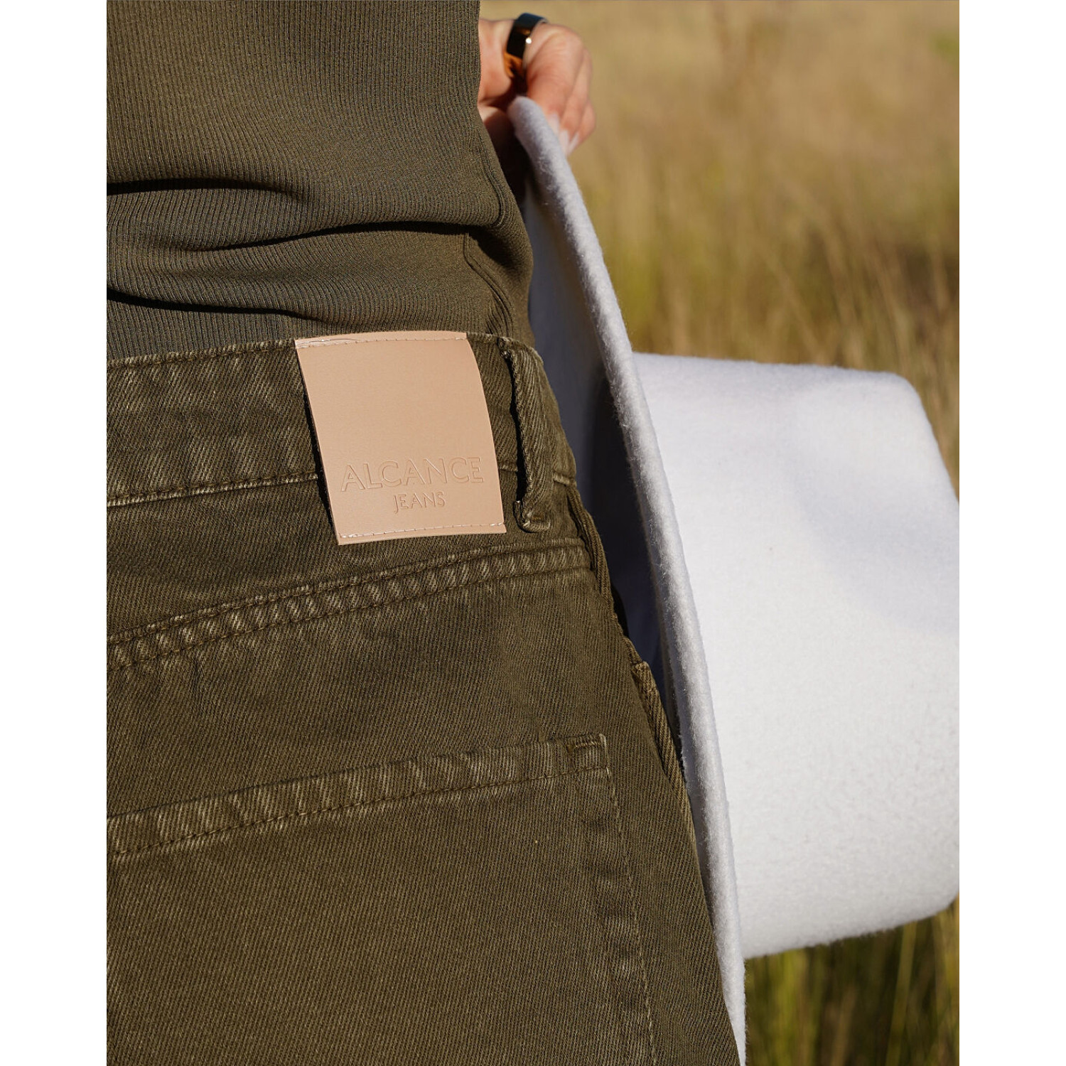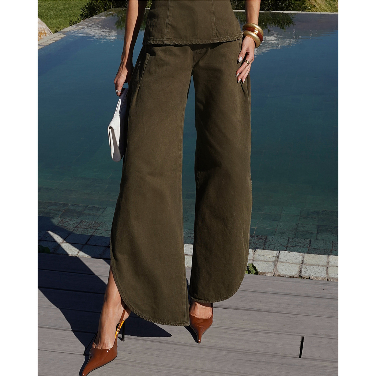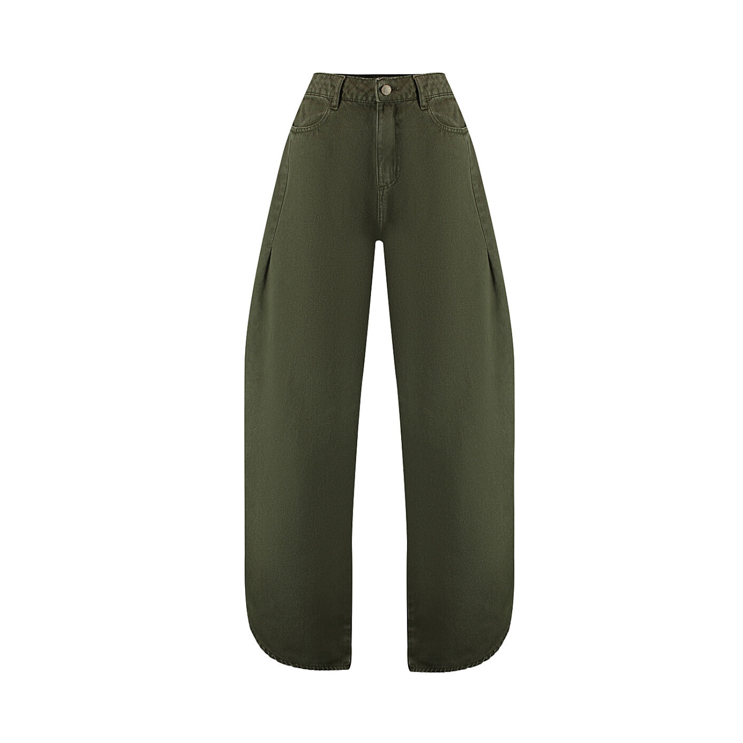 Calça Jeans Verde Militar Balloon Contour Fenda Lateral.