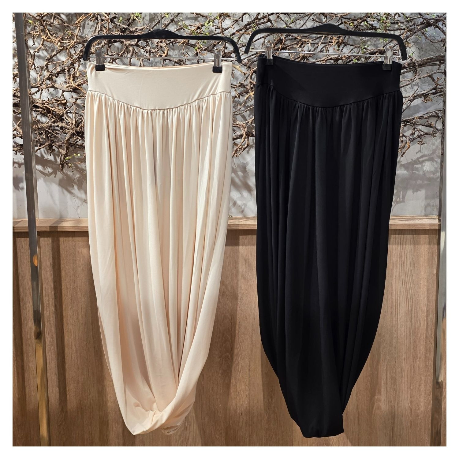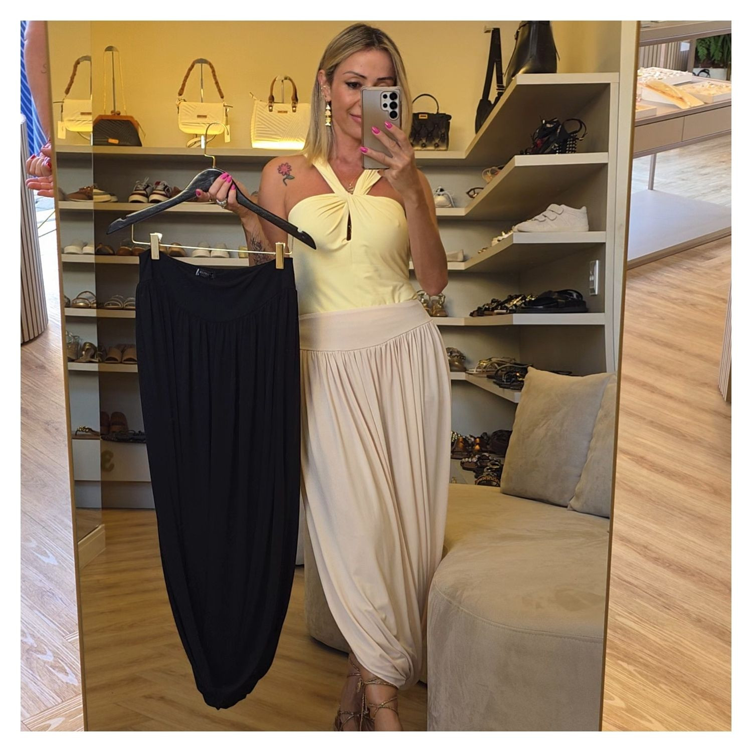 Saia Preta Midi em Malha, Plissada e Balonê.