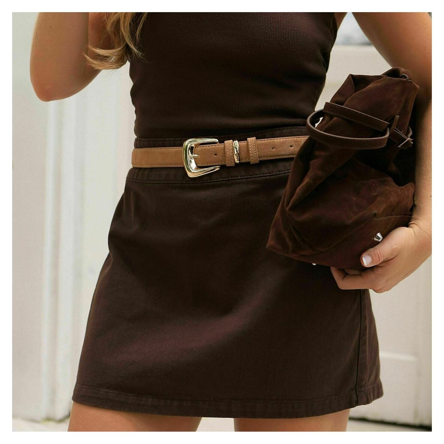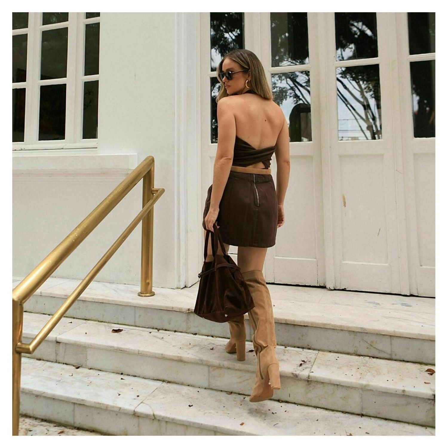 Saia Curta Jeans Marrom Reta Com Zíper Atrás