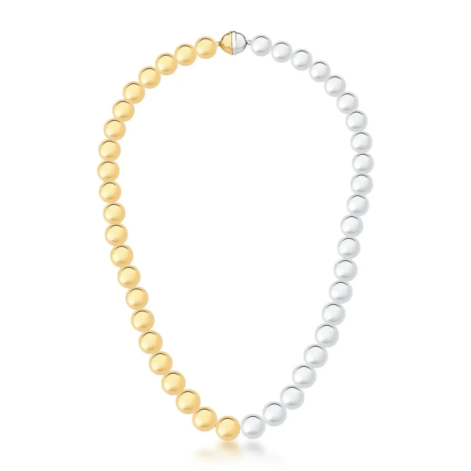 Colar com esferas lisas, com fecho magnético em dois tons. Sendo uma peça única e indispensável, ele traz modernidade e delicadeza, caindo bem em qualquer composição, desde um visual moderno até mesmo clássico.